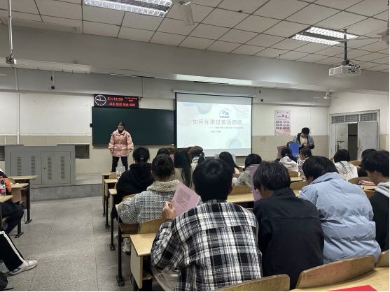 (通讯员黄昊敏/文 张喆/图)少年负壮气,奋烈自有时。为了帮助大家解决英语学习上的困惑,在英语方面有所提高,“优雅地”通过四级考试,11月26日晚8时许,sjb世俱杯中国官网入口的李小妮学姐于12教402从试卷、真题、态度和资料四个方面进行了“如何优雅过英语四级”的主题分享,在英语方面为大家答疑解惑。