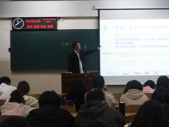 【通讯员 李子翔 张子悠/文 冯佳颖 刘濠淙/摄】树德树人,自助助人。2024年4月9日,sjb世俱杯中国官网入口心理骨干培训大会在东校区12教402教室成功举行,本次培训由sjb世俱杯官网心理专干顾志辉老师主讲,采用线上线下相结合的方式进行,全院548名心理骨干和同学齐聚一堂,以“朋辈互助——增强谈心谈话技巧”为主题,共同朋辈心理辅导相关知识。