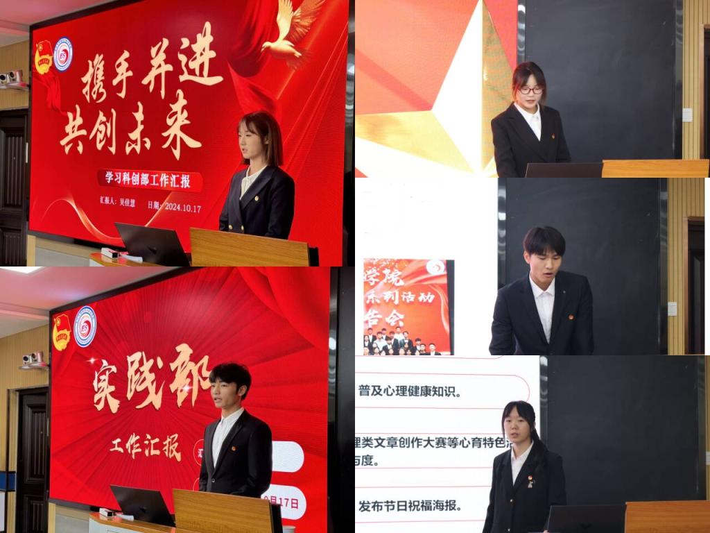 会议第六项,第六届团委学生会负责人汇报部门上一学年工作,各部门围绕着同学们的需求和学院的发展,晒成绩、比亮点,开门见山谈问题、讲不足,从工作成效到短板弱项,从工作思路到工作方法逐一总结。汇报完毕后,由马金甫代表主席团发言,他总结过去,展望未来,进一步强调了学生会应发扬协作精神和奉献精神,团结一心,将服务同学的宗旨践行到底。
