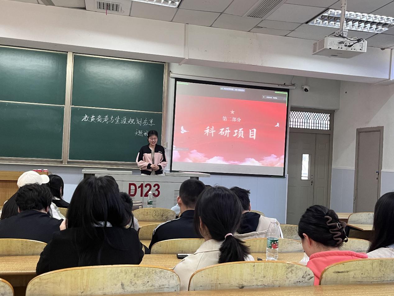 最后,应用心理学专业王瑞学姐分享了应心的就业方向以及专业学习的动机与态度,引导同学们要明确自身优势,了解自己,认识自己,不缺向上动机,就同学们有疑惑感兴趣的问题进行了针对性的讲解。最后以“把风筝扎好,等风来”的一句话勉励大家奋发向上。