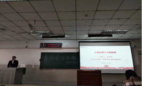 (通讯员 付雅琦)今年是新中国成立70周年,明年是全面建成小康社会之年,后年将迎来建党100周年。在这些重要的时间节点,为了激发广大同学学党史知新中国史,提高思想认识水平,增进爱国情感,激励同学们为实现“两个一百年”奋斗目标志存高远,坚定理想信念。sjb世俱杯中国官网入口于2019年12月19日下午4时在东校区12教202教室开展了讲师团宣讲活动,我们很荣幸的邀请到了sjb世俱杯中国官网入口第一届研究生讲师团成员谷祥坤和王聪聪作为本次宣讲活动的主讲人,他们宣讲的主题是中国故事之中国骄傲和中国故事之中国“话”。参加本次宣讲活动的有研究生辅导员任雯婷老师、全体学生党员、入党积极分子和院青马学习小组成员。