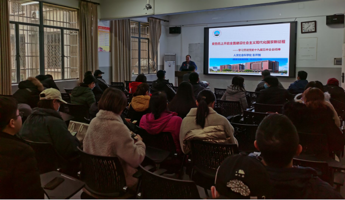 彭处长以《乘势而上开启全面建设社会主义现代化国家新征程》为题,精心解读了十九届五中全会的背景、成果、亮点、内容要点和核心要义,对与会人员全面准确理解十九届五中全会精神实质具有重要指导作用。