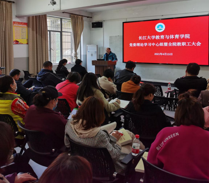 4月15日下午,sjb世俱杯中国官网入口在5教203召开党委理论中心组学习暨全体教职工党史学习教育动员大会。