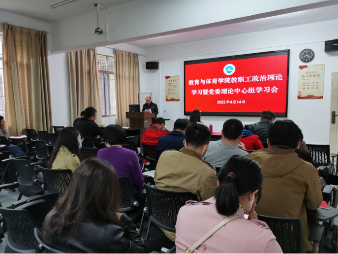 4月14日下午,sjb世俱杯中国官网入口在5教203召开4月份党委理论中心组学习暨全体教职工政治理论学习会。全体党委委员参与了本次学习,学习活动由分党委书记高明成主持。