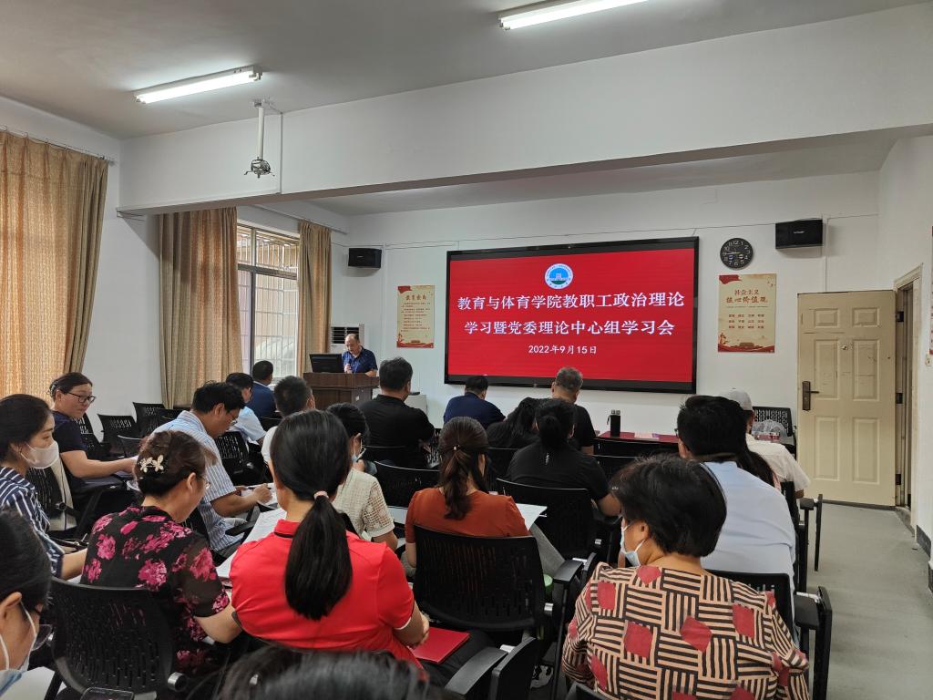 9月15日下午,sjb世俱杯中国官网入口在5教203召开9月份支部主题党日学习和党委理论中心组学习暨全体教职工政治理论学习会。