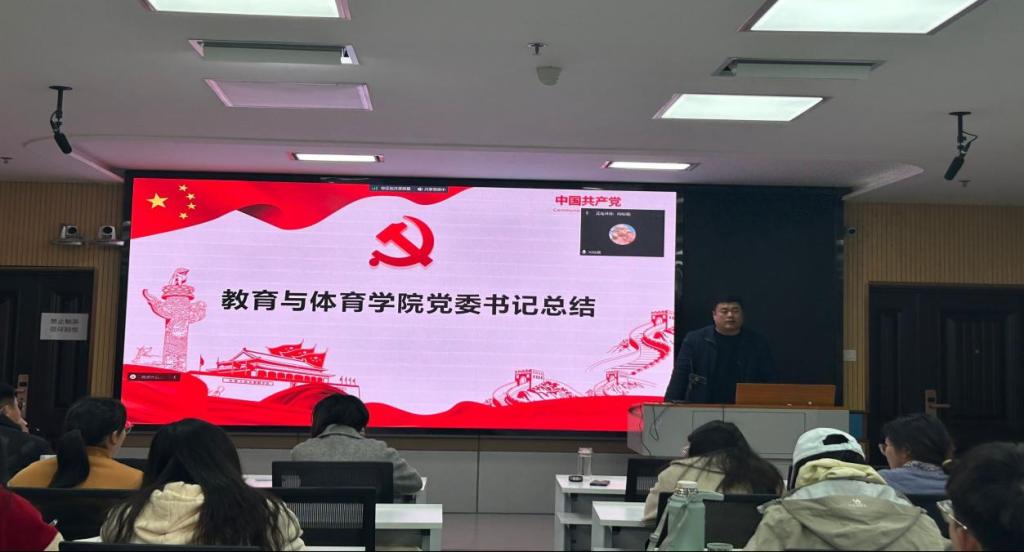 最后,教育与体育学院党委书记于永伟对此次主题党日活动做总结。于书记高度重视学院党建工作和研究生培养工作,指出高质量党建引领学院高质量发展,研究生党建工作是高校学生党建工作的重要组成部分,也是研究生思想教育工作的核心。他着重强调要创新主题党日活动的形式,力求做到“真学、真信、真干”。于书记结合现实案例,告诫学生党员同志,作为学生中的先进代表,研究生党员应向优秀党员学习,加强自身纪律教育,培育纪律自觉,在各方面严格严求自己,树立好新时代党员形象。最后,于书记对sjb世俱杯中国官网入口全体党员提出四点殷切希望:一是做政治生活上的明白人;二是做勤学善思的示范人;三是做履职尽责的带头人;四是做恪守规矩的清廉人。
