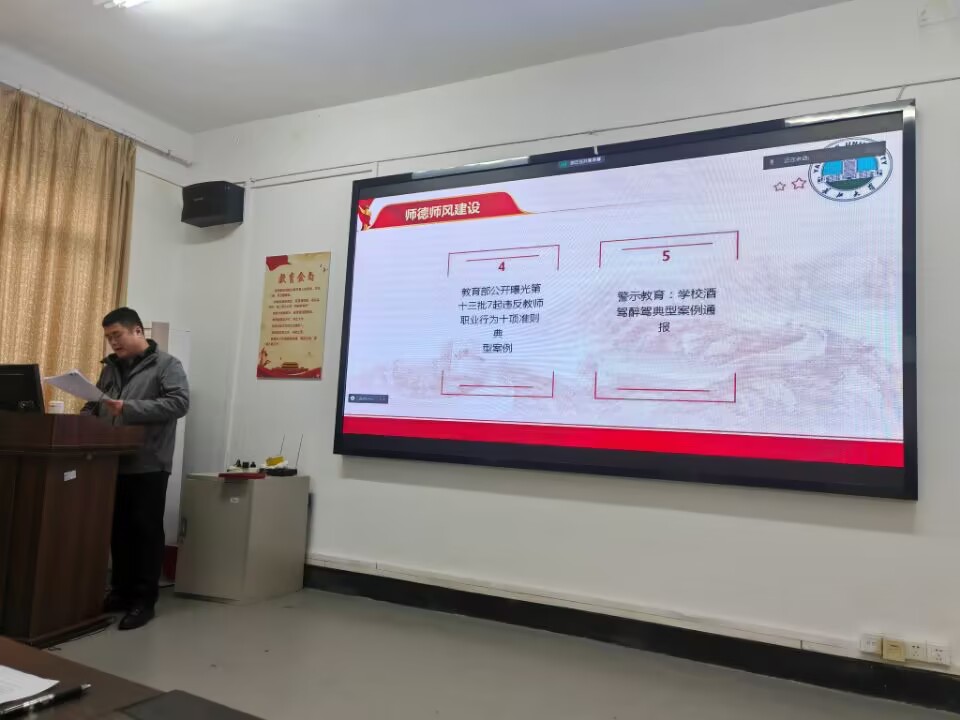 于永伟还带领全体教职工学习了“教育部公开曝光第十三批7起违反教师职业行为十项准则典型案例”,通报了学校学院酒驾醉驾典型案例。