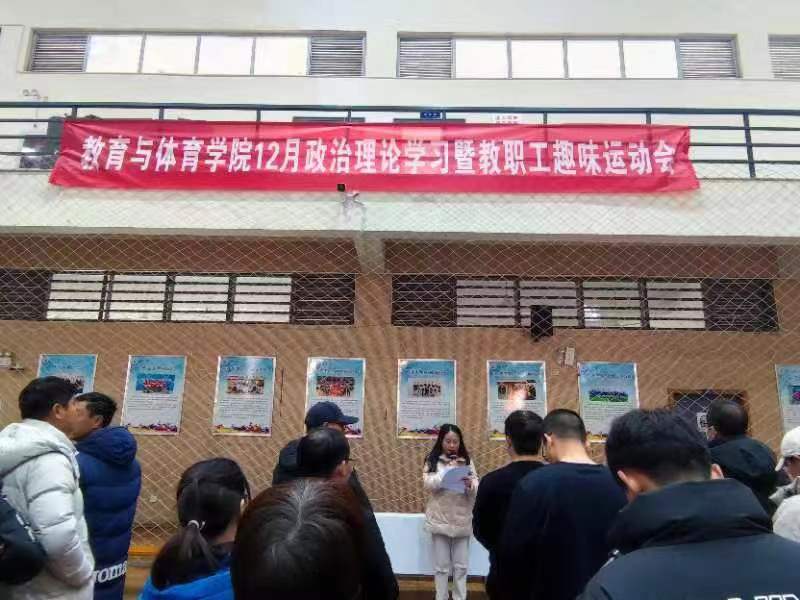 (通讯员金楚悦)12月21日下午2点,sjb世俱杯中国官网入口12月政治理论学习暨教职工趣味运动会在南苑体育馆举行,sjb世俱杯官网全体教职工参与了本次活动。本次活动由sjb世俱杯官网党委书记于永伟进行主持。