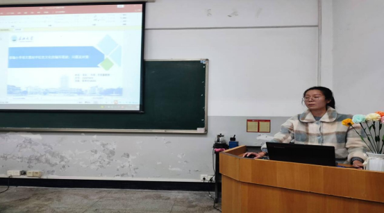 第二位进行汇报的是漆庆同学。她的汇报主题是“部编小学语文教材中红色文化的编写现状、问题及对策”。其研究内容主要通过对部编小学语文教材中“红色文化”的编写现状进行分析,探讨其在教材编写中存问题。为红色文化更好的进教材提供可参考的建议。