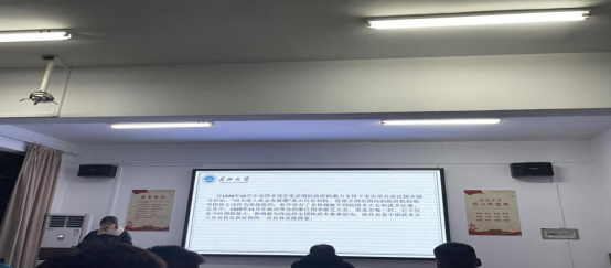 其次是体育教育训练学专业的蔡略同学,他就“中国武术典型拳种国际化传播:成就、问题、对策-以太极、少林拳为中心的考察”做专题报告。他从介绍太极、少林拳的起源。以文献资料法、问卷调查法、内容分析法为研究方法,对中国武术国际化传播为引导进行汇报。