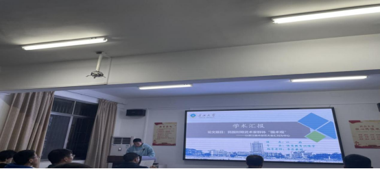 接着是体育教育训练学专业的魏满意同学。她就“民国时期浙江国术游艺大会及其影响考论”做了专题报告。她详细介绍本次主题的研究背景,其以民国时期浙江国术游艺大会的筹备策划、民国时期浙江国术游艺大会的详尽过程以及民国时期浙江国术游艺大会产生的广泛影响为研究过程进行详细汇报。