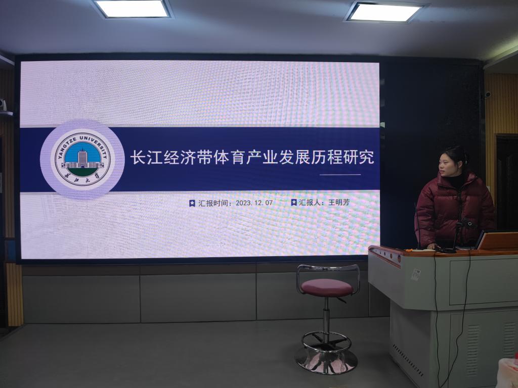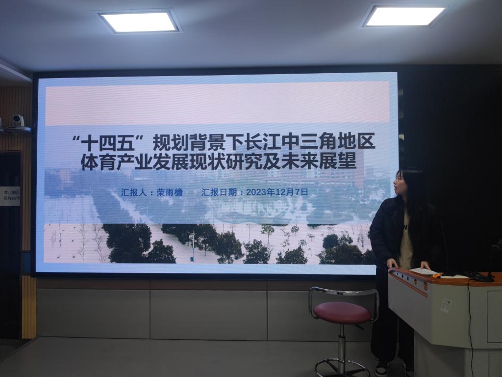 本次活动2022级体育教育训练学的陈舒鹏、王明芳、荣雨檐、刘国勇四位主讲同学依次就其研究成果进行了学术汇报。