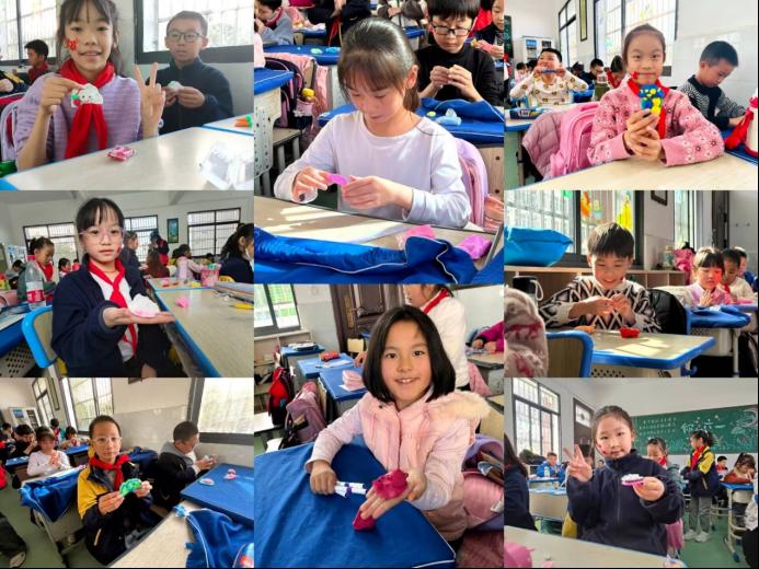 在轻松愉快的学习氛围中,课堂活动进行到了第二部分——手工体验。小朋友们纷纷变身小厨神,发挥自己的想象力和创造力,利用黏土制作出了自己心目中最特别的饺子、汤圆和红豆米饭,并争先恐后地向身边的志愿者们进行展示,每一个小朋友的脸上都洋溢着自豪与喜悦的笑容。