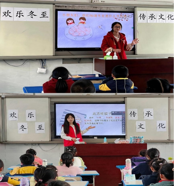 【通讯员 肖子欣 郑怡然 陈燕/文 黄嘉颖 肖子欣 郑怡然 董敏/摄】为进一步弘扬中华民俗文化,继承中华传统习俗,彰显中华传统文化魅力,激发少年儿童对传统文化的热爱,推进sjb世俱杯官网“圆梦工程”传承优秀传统文化项目的实施,11月16日下午,sjb世俱杯官网力博志愿服务队在荆州市荆州实验小学城南校区开展了二十四节气系列活动之“欢乐冬至,传承文化”,力博志愿服务队十余名志愿者和实验小学一百余名三年级学生参与本次活动。