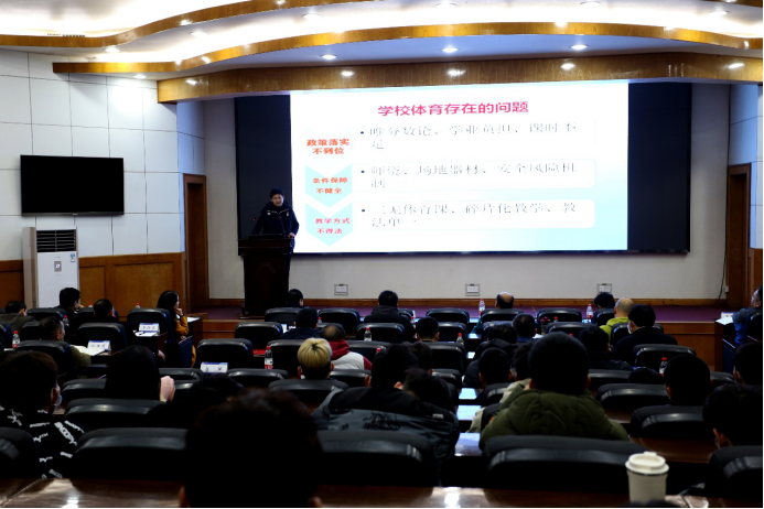 第二阶段由兼职导师代表向参会人员作“新时代学校体育发展改革” 的主题报告。沙市区教育局李正林老师报告认为学校体育工作中存在的主要问题是:政策落实不到位,条件保障不健全,教学方式不得法。认为新时代学校体育改革发展方向体现在:坚持立德树人,实施一体化体育课程设计,改革教学组织形式,改变传统教学方式,强调课内教学与课外体育活动的有机联系,设立学校体育“评价、保障、习惯、示范”的刚性要求几个方面。湖北省沙市中学江来波老师以高中体育教学为基础,分析了高中体育教学现状,认为高中体育教学的要求提高了,但是体育教师存在“一专突出,多能不足”的问题,指出新时代体育教育专业人才培养目标任务发生变化,需要更新教育理念,重构知识体系,加强学生的大体育观和为体育事业献身精神的培养。荆州市实验中学谭海林老师依据国家政策文件,梳理了近两年学校体育工作的热点。