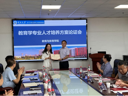 院长张艳红为7位外聘老师颁发聘书,并介绍了sjb世俱杯官网教育学专业师范认证的背景,提出以学生为中心,落实“立德树人”任务,深化教育教学改革。