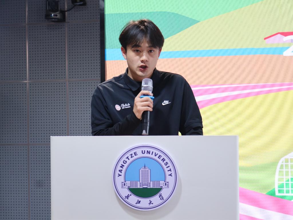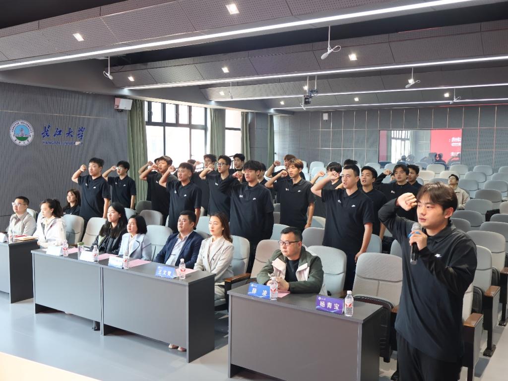 随后,由志愿者代表肖宇发言,他表达了对姚基金项目负责人的感谢,承诺在支教过程中将用自己所学给乡村孩子们带来运动的快乐,激发孩子们的梦想与潜能。最后由他带领全体志愿者完成了庄严的宣誓。