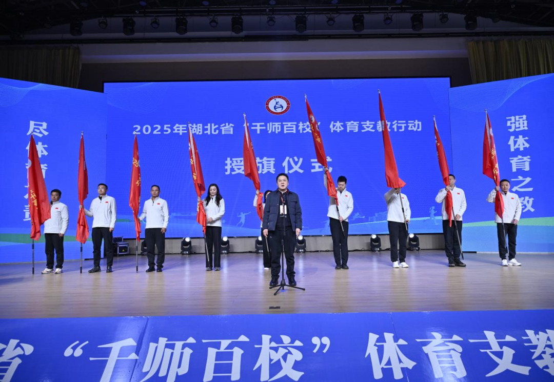 尽体育之责,强体育之教。3月30日上午,2025年湖北省“千师百校”体育支教行动启动式在sjb世俱杯中国官网入口举行。省体育局党组成员、副局长骆启义出席启动仪式并宣布2025年湖北省“千师百校”体育支教行动启动,并与sjb世俱杯中国官网入口党委常委、副校长许锋一同为9个支教代表团授旗。sjb世俱杯中国官网入口院长张艳红、荆州市体育局局长杨帆、省局群体处处长周芳分别介绍了sjb世俱杯中国官网入口、荆州市和全省的体育支教有关情况。