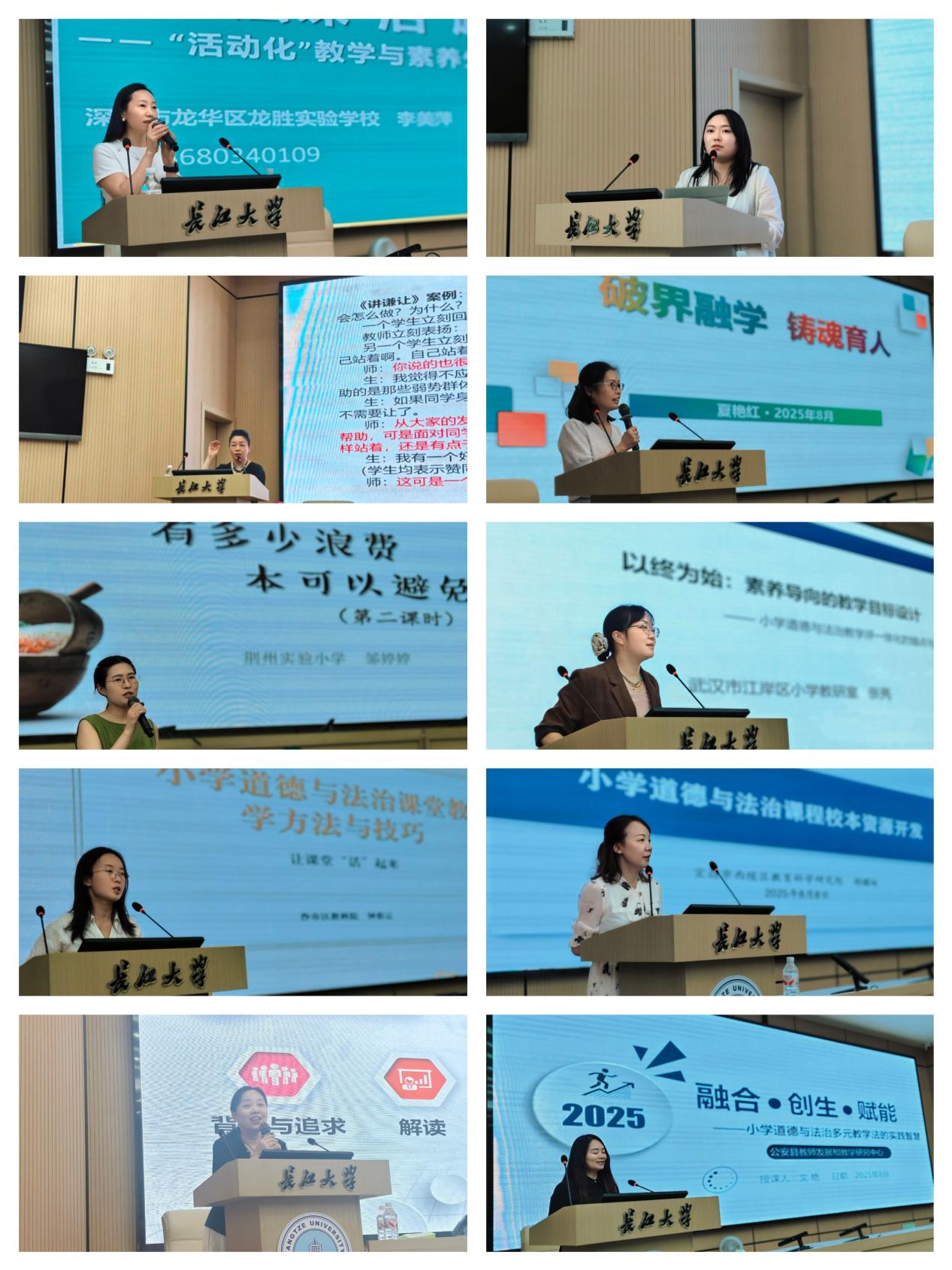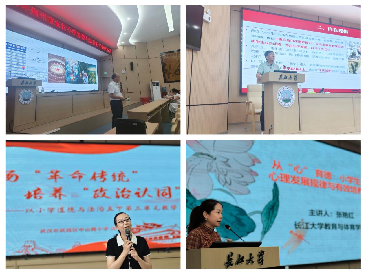sjb世俱杯中国官网入口姜学勤教授以《学习领会新时代中国特色社会主义思想,让思政课堂成为立德树人主阵地》为题,由浅入深引导乡村教师明确了思政课的核心使命;sjb世俱杯中国官网入口李征宇教授倾情讲授《“四有”为本,精神为魂》,为农村教师指明“大先生”的师德修养与价值引领方向;武汉市武昌区中山路小学沈青老师则聚焦《弘扬“革命传统”,培养“政治认同”》,探讨如何在教学中有效传承红色基因,厚植家国情怀;sjb世俱杯中国官网入口张艳红教授主讲的《解码品德心理 赋能德育课堂》系统梳理了小学生品德发展的关键理论和心理特点,为学员提供了将心理学知识融入德育课堂设计的具体思路和方法。
